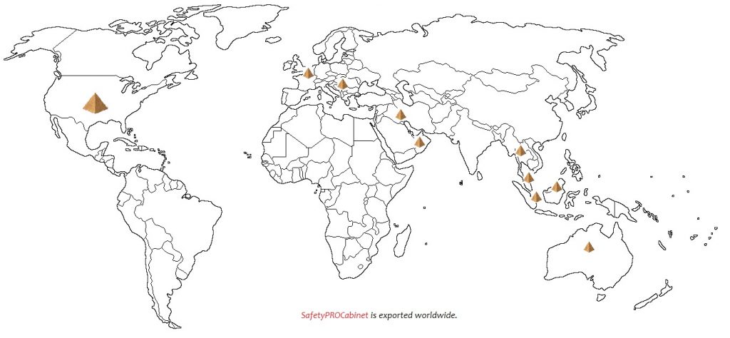 ProSafety Cabinets are manufactured in accordance to NFPA(National Fire Protection Association) & OSHA regulations. Our Safety Cabinets are widely used in Malaysian Public and Private Universities and being are exported to other countries.